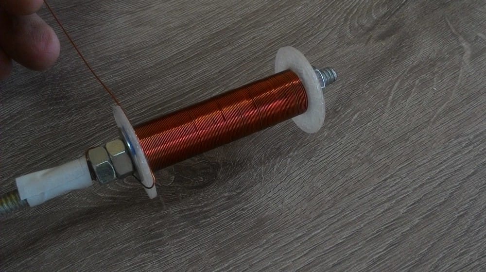 Winding the coil will be the most tedious part of this project, but in the end you will have a very cool electromagnet! Thankfully Mateus made this for us with a screwdriver. Will be a good ideia to protect each layer with insulating tape to prevent any overlap. And remember to wind the wire always in the same direction.
