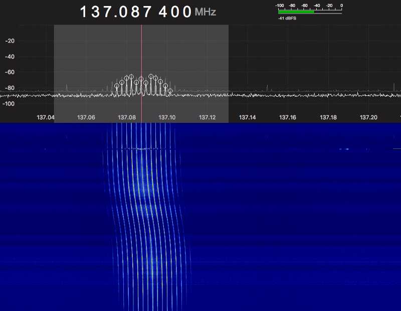 This signal is fairly weak, so I need a big antenna. There are several types but the best choice is the QFH (QuadriFilar Helicoidal) Antenna which have the right polarization for this type of signal and it’s easy to build. Many people also use the Turnstile Antenna which works pretty well for them too.